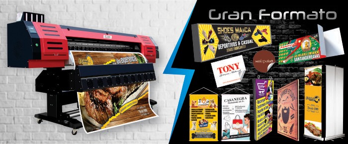 Contamos con el servicio de gran formato para su publicidad. Carteles, lonas, pendones, vinilos, vallas, roll-up.